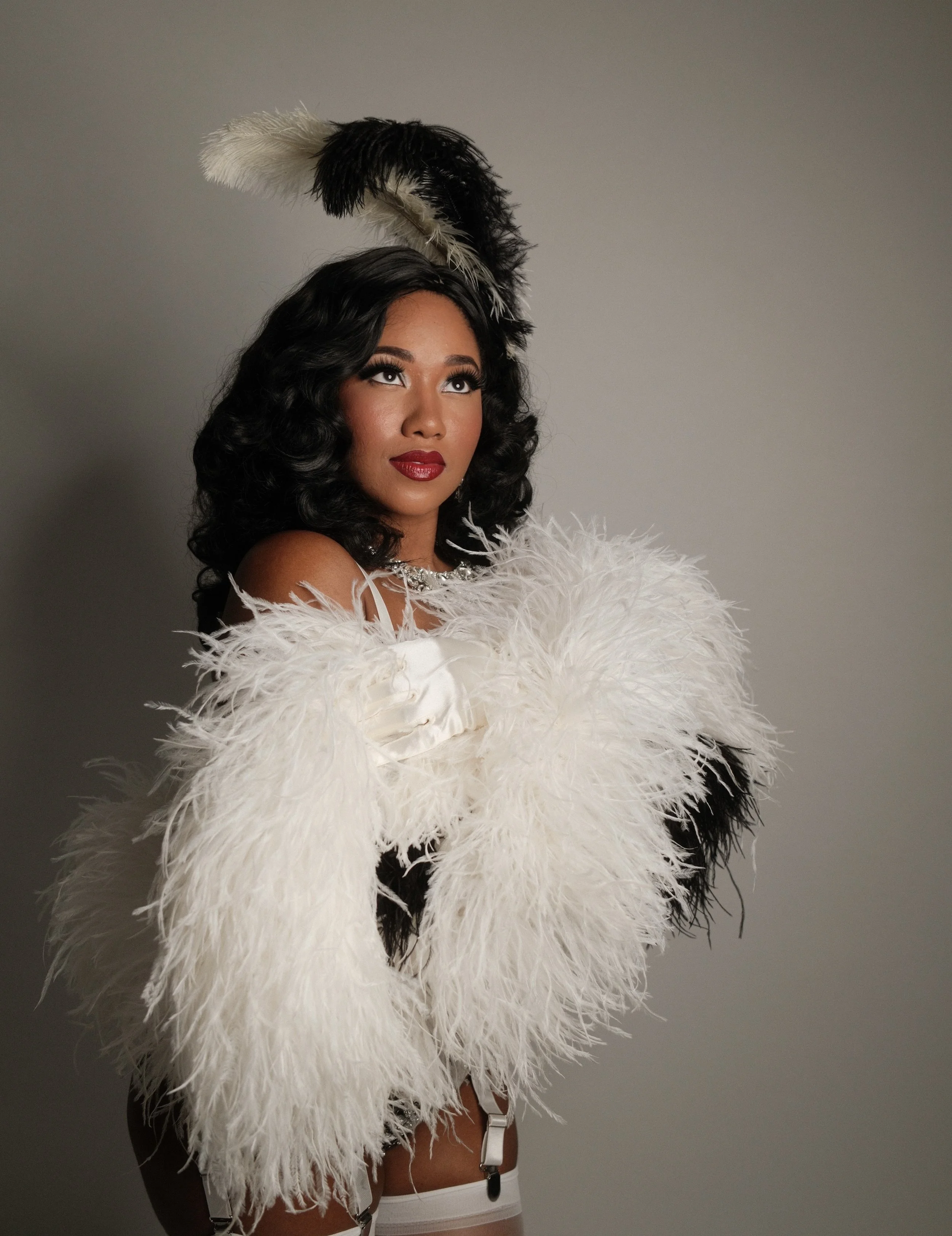 Aileen Stunning is an electrifying and sensual force in the world of Burlesque. As a celebrated Black burlesque performer, she captivates audiences with her sultry voice and dazzling presence, transforming every performance into a mesmerizing celebration of glamour and grace. With a 20 year background in both music and dance, Aileen Stunning brings a unique fusion of sensuality and sophistication to the stage. Each show, Aileen’s talent shines as brightly as her stage presence. Proficient in showcasing classic burlesque props, utilizing them in various acts. She is also an enthusiast for Burlesque History, making educational social media content highlighting legendary Burlesque Artists.
